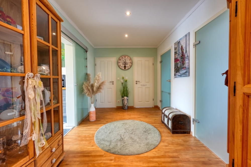 Wenn Sie sich noch auf der Suche nach Ihrem Traumhaus befinden, sollten Sie sich dieses schöne Einfamilienhaus mit PV-Anlage, Wintergarten, Doppelgarage und einem sehr schönen großen Garten unbedingt anschauen. Das Haus wurde im Jahr 1980 errichtet und in den letzten Jahren aufwendig modernisiert.Im Erdgeschoss befinden sich folgende Räumlichkeiten: